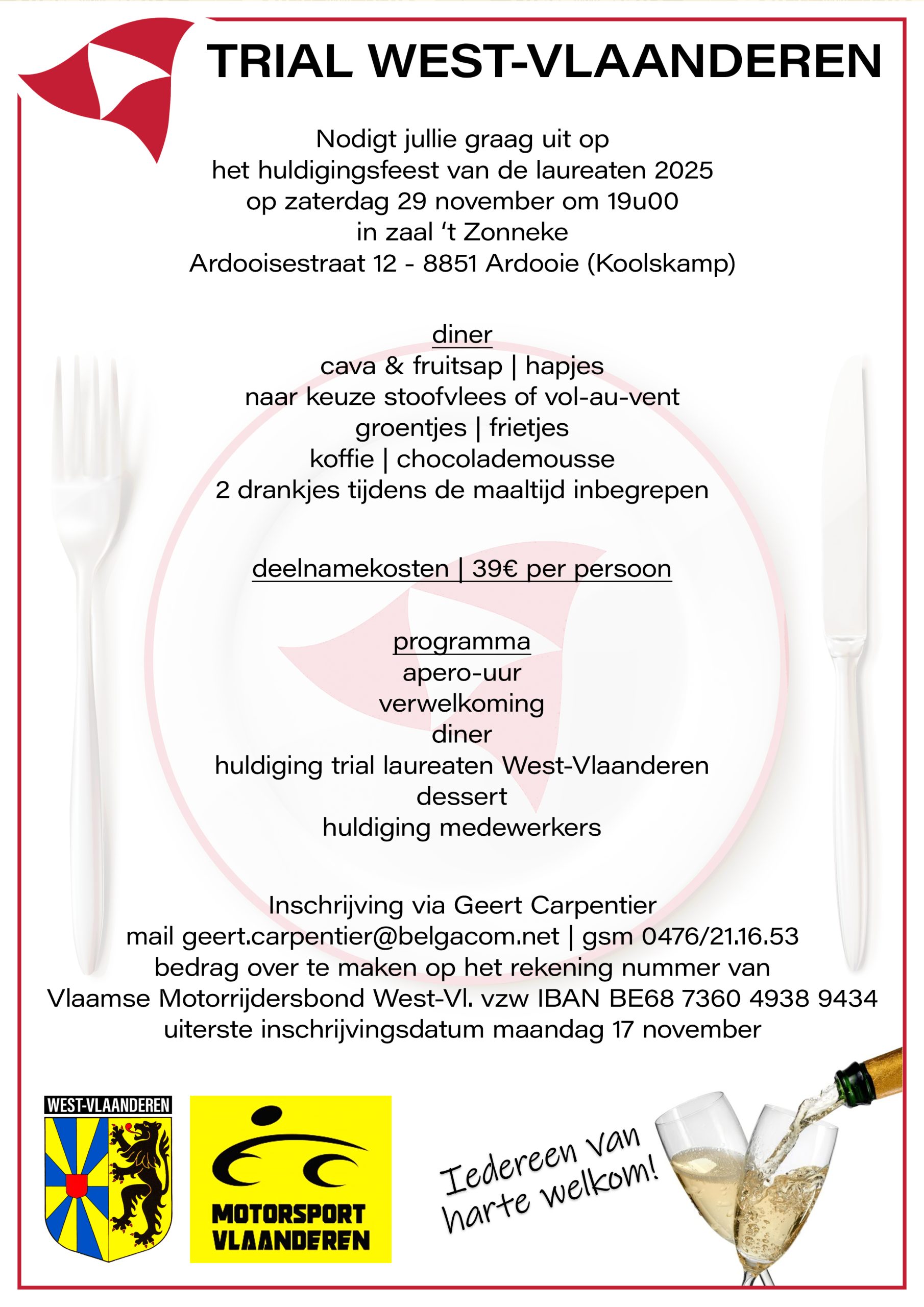 – 29/11 NIEUW: Trialfeest met de huldidingen van het Open West-Vlaams Trialkampioenschap 2025, noteer alvast deze datum in je agenda. Info inschrijving